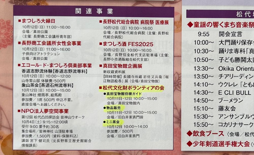 松代文化財ボランティアの会は、真田宝物館待機ガイド、物品販売、ミニ茶会で協力します。お立ちより下さい。お待ちしております。